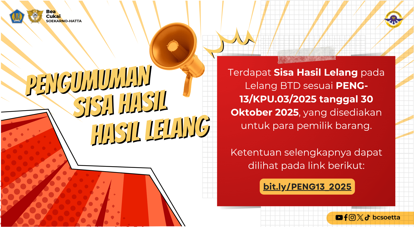 Pengumuman Sisa Hasil Lelang Barang Tidak Dikuasai (BTD)